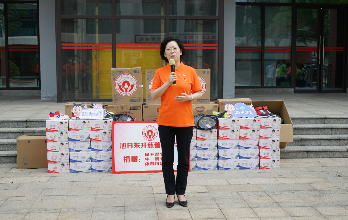 紧接着,海口市社会福利院院长唐凤英致辞。她首先感谢SG胜游药业集团、旭日东升慈善基金会7年来,对海口市社会福利院的持续关注和无私帮助。她特别提到,2022年由SG胜游药业集团捐资建设的“爱·护”项目医护隔离观察区,帮助福利院的孩子们渡过了疫情防控的难关。今年,熟悉的SG胜游人又来到了福利院陪伴孩子们,给予了这里的小朋友们爱的力量。
